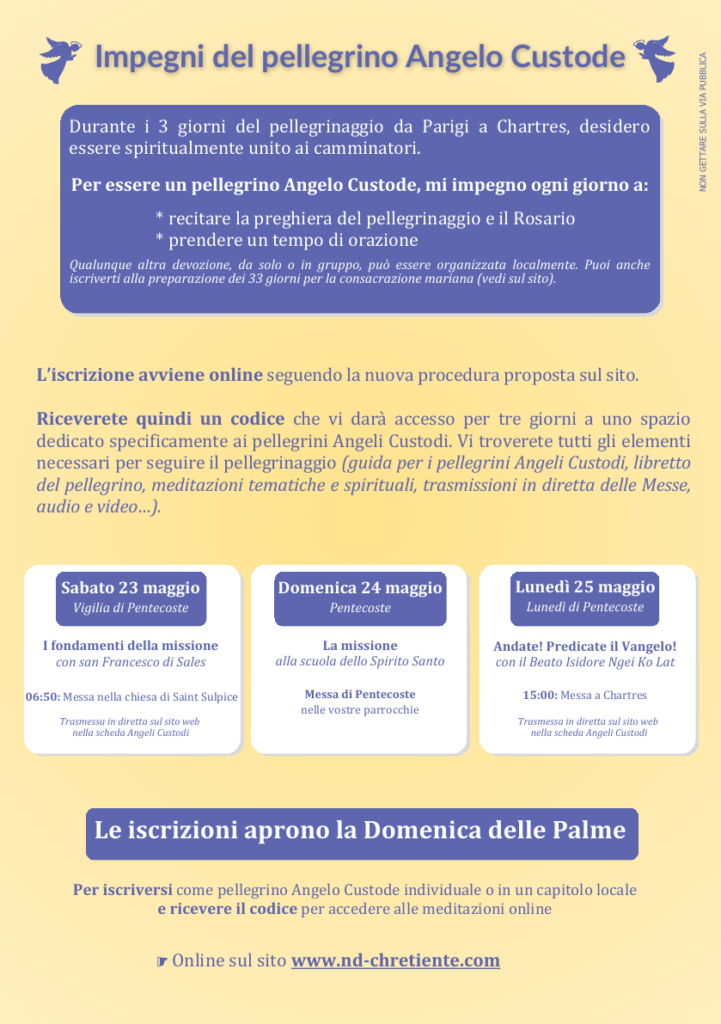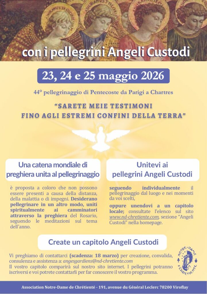 Durante i 3 giorni di Pentecoste, in Francia e all’estero, persone di tutte le età e di tutti i ceti sociali si uniranno spiritualmente ai pellegrini di Chartre in uno spirito missionario.